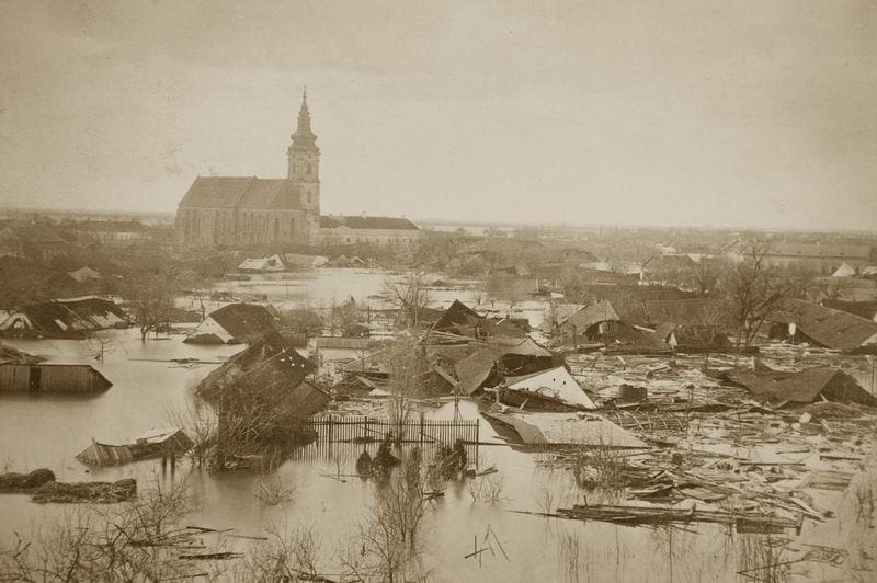 1879 márciusában Szegedet katasztrofális árvíz sújtotta. A Tisza átszakította a védőgátakat, és szinte az egész várost elárasztotta; csak a magasabban fekvő Palánk városrész menekült meg. Több mint 150 ember életét vesztette, és mintegy 60 000 ember vált hajléktalanná. Az 5 600-nál is több épület közül mindössze 265 maradt sértetlen. A víz csak három hónap múlva húzódott vissza.