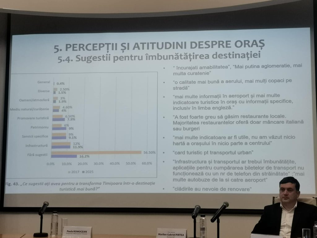 „Dacă ne uităm la statisticile oficiale, nu putem vorbi de o scădere, ci de o transformare. Turiștii se cazează mai puțin la hoteluri și mai mult prin Airbnb. Alții vin pentru a vizita rude sau pentru studii, evenimente și conferințe. Până la urmă, cei mai buni ambasadori ai Timișoarei suntem noi”, a explicat Alexandru Drăgan.