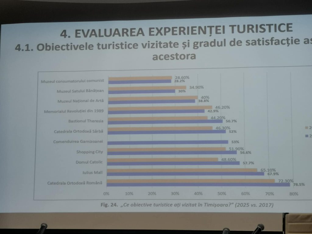 „Tipologia și comportamentul turiștilor s-au schimbat față de 2017 și 2019. Datele nu arată o scădere, ci, dimpotrivă, o creștere a numărului de vizitatori în lunile analizate, martie–iunie. Unii turiști au venit tocmai pentru că Timișoara a deținut titlul de Capitală Europeană a Culturii. Acesta rămâne un brand și se dovedește că impactul său nu a fost punctual, ci continuă să atragă turiști și după 2023”, a completat Florentina Popescu.