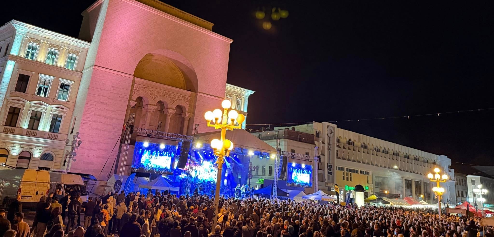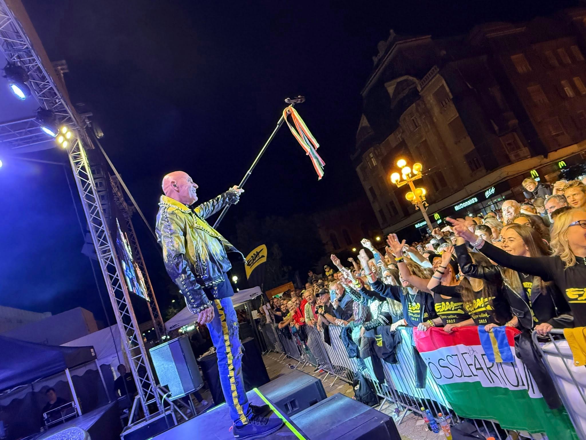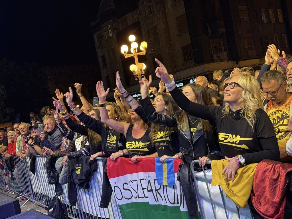 Legendara formație Edda Művek, una dintre cele mai iubite trupe rock din Ungaria, a urcat pe scena din Piața Operei la ora 20.00, când piața era deja plină. Poate doar puțin mai puțină lume a fost decât la concertul de sâmbătă cu Rúzsa Magdi, dar era oarecum normal într-o seară de duminică, când mulți turiști veniți la Zilele Maghiare au decis să plece spre casele lor. În plus, era anunțată și ploaie, care într-adevăr a venit pe finalul concertului Edda.